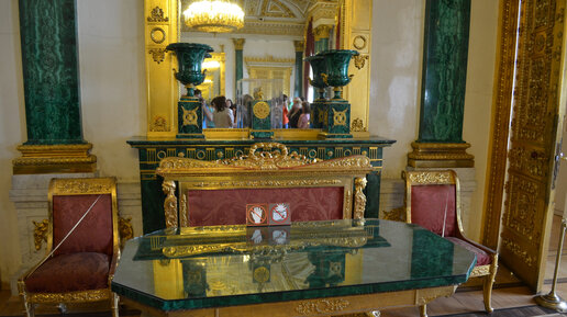 Малахитовый зал Эрмитажа.Малахитовый зал отделан по проекту архитектора Брюллова в 1839 году.