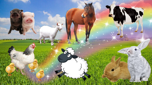 Фермерские животные: корова, цыпленок, утка, овца, коза, кролик, свинья, лошадь - Звуки животных
