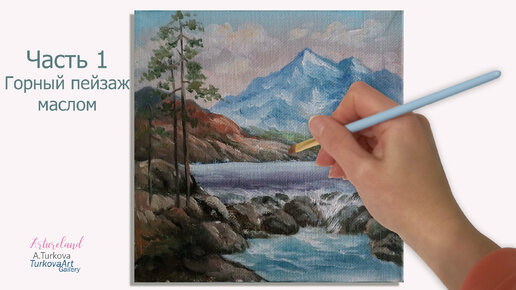 Горный пейзаж маслом/ Голубые горы и озеро / Часть 1