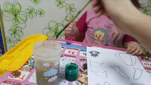 Настя учится рисовать кистью.Насте 2г.10мес.
