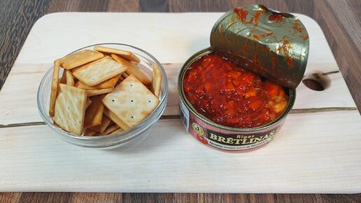 Беру банку рижской кильки, крекер и готовлю рыбный праздничный салат (буду готовить такой и на Новый год)
