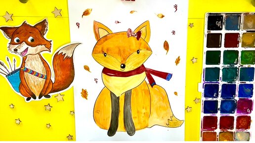 Как нарисовать 🦊ЛИСУ КРАСКАМИ акварелью #рисоватьлегко #длядетей #рисуеммультфильмы