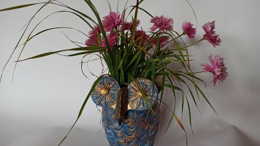 Винтажная ваза-сова из стеклянной банки и папье-маше. Потрясающая поделка из бросового материала.