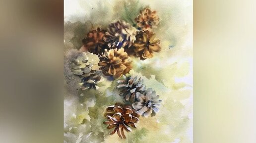 Шишки. Автор Марина Ласаева. #акварель #акварельнаятехника #акварельнаяживопись #живопись #watercolor Источник видео: https://youtu.be/yv8_cksoYx0