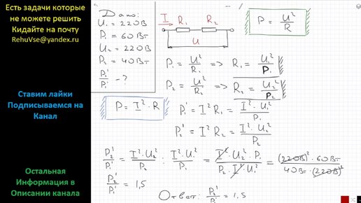 Физика На двух лампах написано: «220 В, 60 Вт» и «220 В, 40 Вт». В какой из них мощность тока будет меньше, если обе лампы включить в сеть