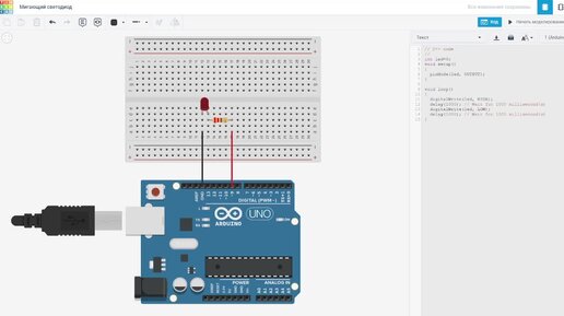 Мигающий светодиод на ардуино в тинкеркаде