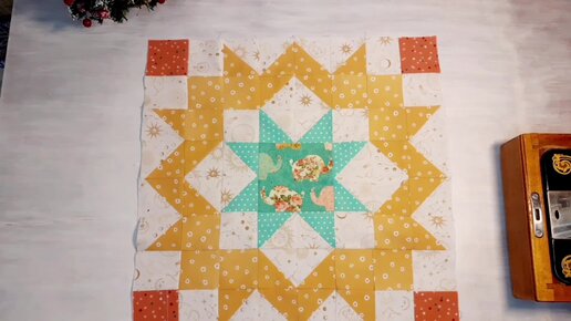 Собрала лоскутный блок "Звезда Вирджинии" #5 для одеялка. Показываю