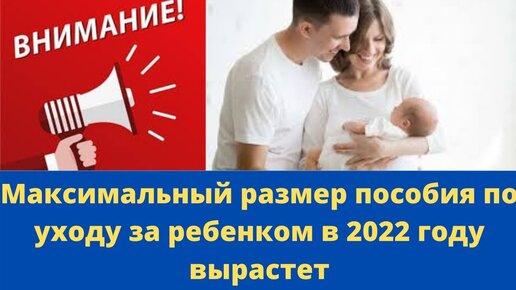 Максимальный размер пособия по уходу за ребенком до 1.5 лет в 2022 году, вырастет до 31 тыс рублей