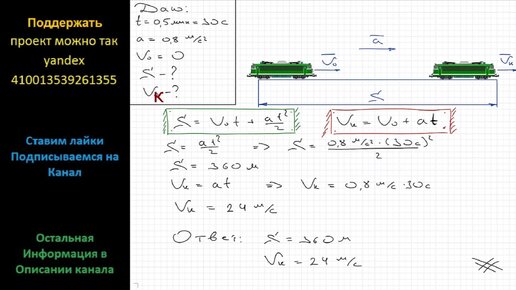 Физика Электропоезд, отходящий от станции, в течение 0,5 мин двигался с ускорением 0,8 м/с2. Определите пройденный за это время путь и