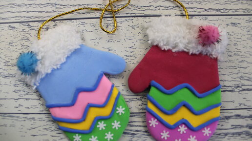 Новогодние ВАРЕЖКИ из воздушного пластилина. Игрушка на елку своими руками.
