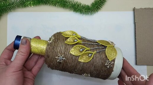 Новогодний декор стеклянной бутылки