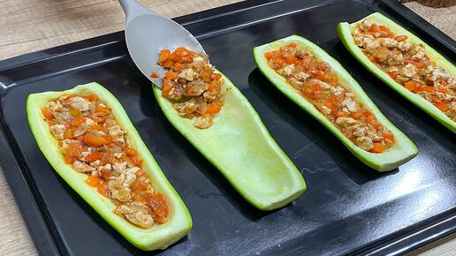 Шикарная подача обычных кабачков с начинкой. Блюдо,которое можно есть и в холодном и в горячем виде.