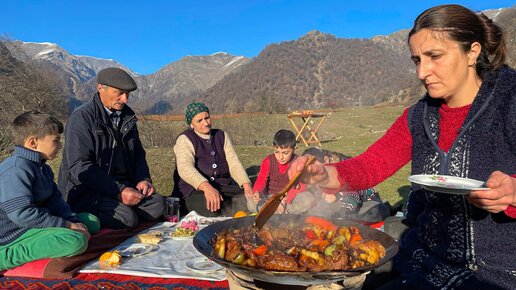 Мягкая Лепешка со Свежим Мясом Баранины и Овощей! Семейный ужин высоко в горах.