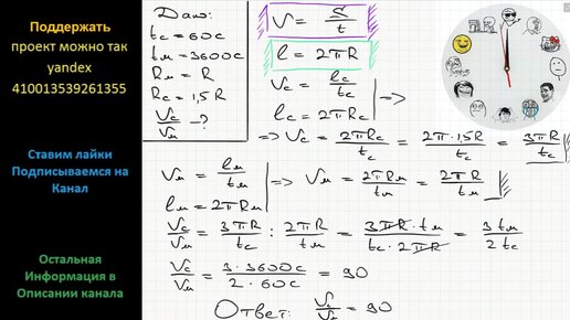 Физика Во сколько раз скорость конца секундной стрелки больше скорости конца минутной стрелки часов, если секундная стрелка в 1,5 раза