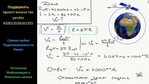 Физика Для связи используют искусственный спутник Земли, «висящий» постоянно над одной и той же точкой экватора. С какой скоростью движется