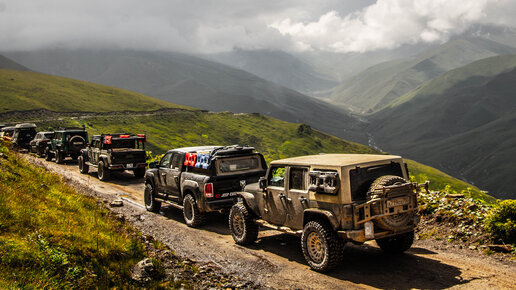 Путешествие по Кабардино-Балкарии на внедорожниках Jeep Gladiator, Jeep Wrangler и Dodge Ram.