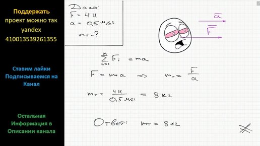 Физика Какова масса тела, которому сила 4 Н сообщает ускорение 0,5 м/с2?