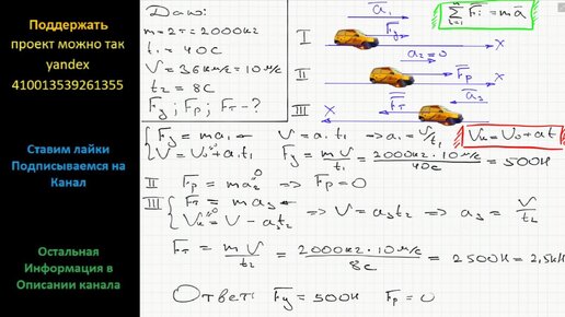 Физика Автомобиль массой 2 т, тронувшись с места, за 40 с набрал скорость 36 км/ч, затем двигался прямолинейно равномерно. При торможении