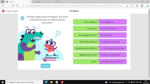 Мои ответы (84 из 90). Олимпиада по Русскому языку (1-й класс) 18 января - 7 февраля 2022 на УЧИ РУ
