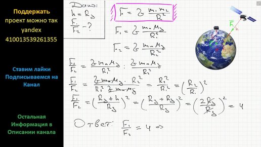 Физика Во сколько раз изменилась сила притяжения Земли прибора, установленного на искусственный спутник Земли, при удалении спутника от ее
