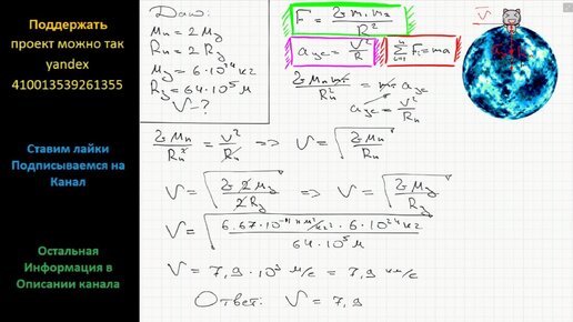 Физика Чему равна первая космическая скорость для планеты, у которой масса и радиус в два раза больше, чем у Земли?