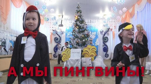 Танец смешных маленьких пингвинов на новогоднем утреннике в детском саду.