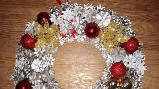 Новогодний венок из шишек и шаров