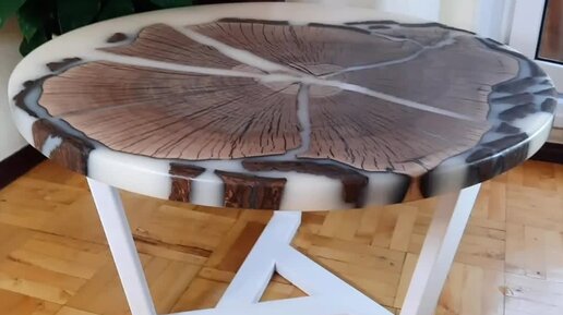 Эксклюзивный журнальный круглый стол из дерева и эпоксидной смолы