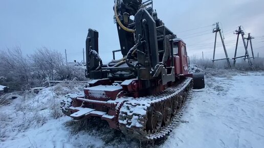 Трелевочный трактор с отвалом и манипулятором.