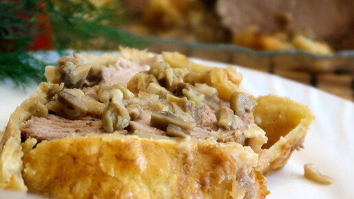 Мясо запеченное в слоеном тесте с грибами Сочное и очень вкусное