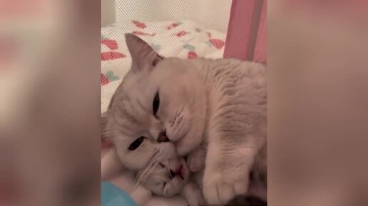 Трогательные объятия кошки с котенком, которые поднимают настроение