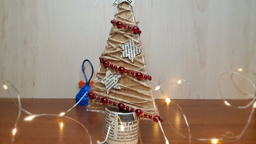 Сделала стильную рождественскую поделку из картона, джута и втулки от бумажного полотенца