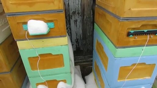 сравниваю зимовку на воле в 6 рамочных ульях с открытым и закрытым сетчатым дном, на улице минус 3