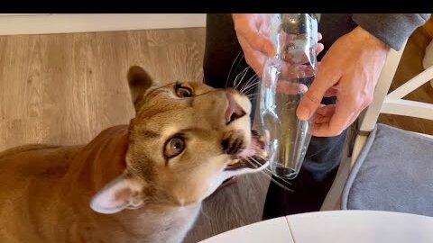 Пума Месси отнимает игрушку, которую делают для Герды - ревнует наш большой кот