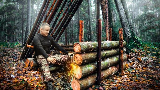 ОДИН В ДИКОМ ЛЕСУ.СТРОЮ ПРИМИТИВНОЕ УКРЫТИЕ. ГОТОВЛЮСЬ К ЗИМЕ