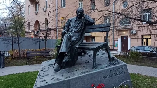 Памятник Сергею Михалкову и фрагмент Новинского бульвара в г. Москве