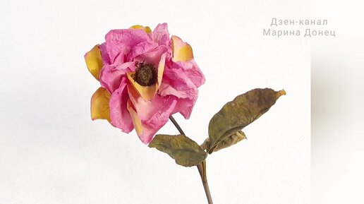 Из засохшего бутона розы делаем сухоцвет с роспуском.
