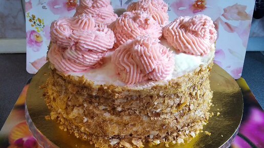 Торт НАПОЛЕОН со сливочными Розочками из слоеного теста