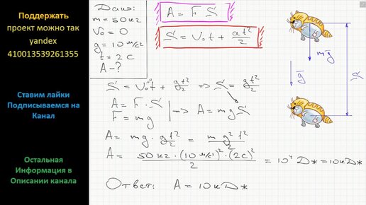 Физика Груз массой 50 кг свободно падает из состояния покоя в течение 2 с. Какую работу совершает при этом сила тяжести?