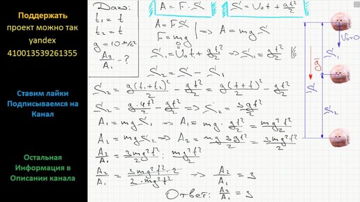 Физика Сравните работу силы тяжести при свободном падении тела за первую и вторую половину времени падения