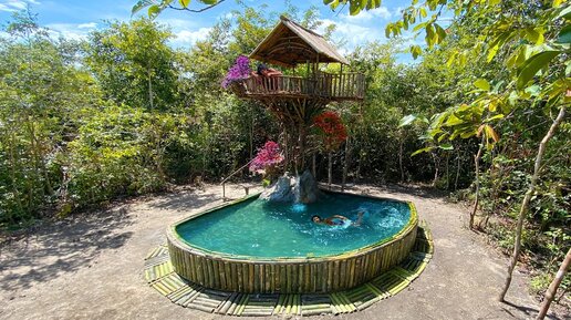 Построить своими руками потрясающую водную горку с бамбуковым бассейном в подземном доме.