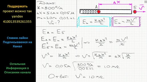 Физика При подготовке игрушечного пистолета к выстрелу пружину жесткостью 800 Н/м сжали на 5 см Какую скорость приобретает пуля массой 20 г