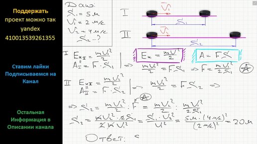 Физика Хоккейная шайба скользит по льду 5 м, если ей сообщить начальную скорость 2 м/с (см. рис.). Сколько метров она «проедет», если ей