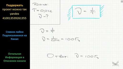 Физика Период колебаний тела 0,01 с. Какова частота колебаний?