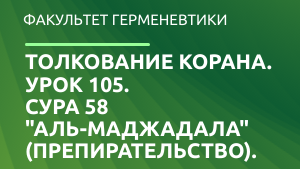 Толкование Корана. Урок 105. Сура 58 "аль-Маджадала" (Препирательство).