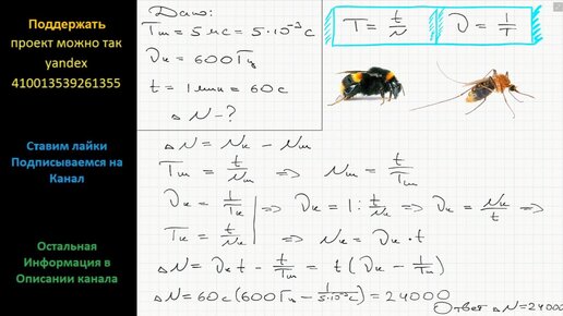 Физика Период колебаний крыльев шмеля 5 мс. Частота колебаний крыльев комара 600 Гц. Какое из насекомых сделает больше взмахов крыльями за