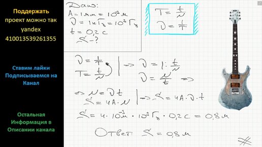 Физика Амплитуда колебаний точки струны 1 мм, частота 1 кГц. Какой путь пройдет точка за 0,2 с?
