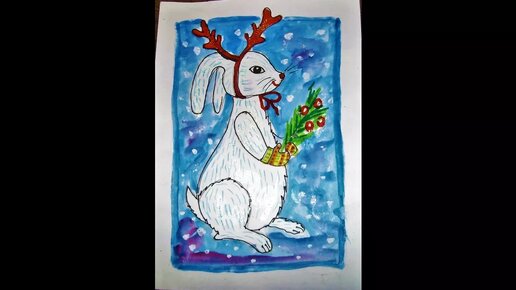 Как просто нарисовать Новогоднего зайчика, открытку.