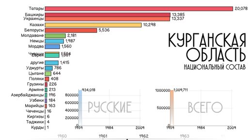 Курганская область.Национальный состав.Население Кургана.Этнический состав.Статистика 1959-2010