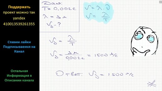 Физика Определите скорость звука в воде, если источник звука, колеблющийся с периодом 0,002 с, возбуждает в ней волны длиной 3 м.